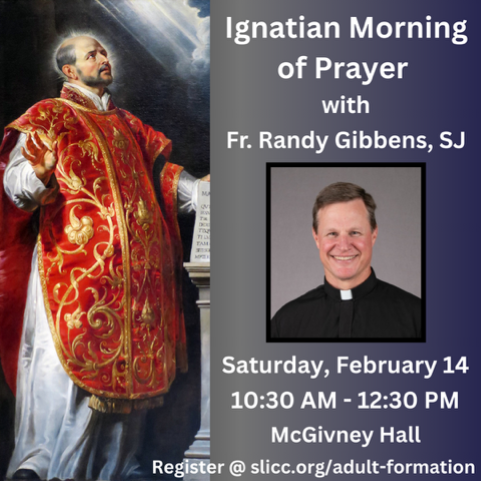 We are excited to welcome Fr. Randy Gibbens, SJ as the presenter for our next Ignatian Morning of Prayer. The theme for the morning is Ignatian Prayer and Discernment. Please join us on Saturday, February 14 from 10:30am-12:30pm in McGivney Hall for spiritual nourishment and for coffee and donuts!