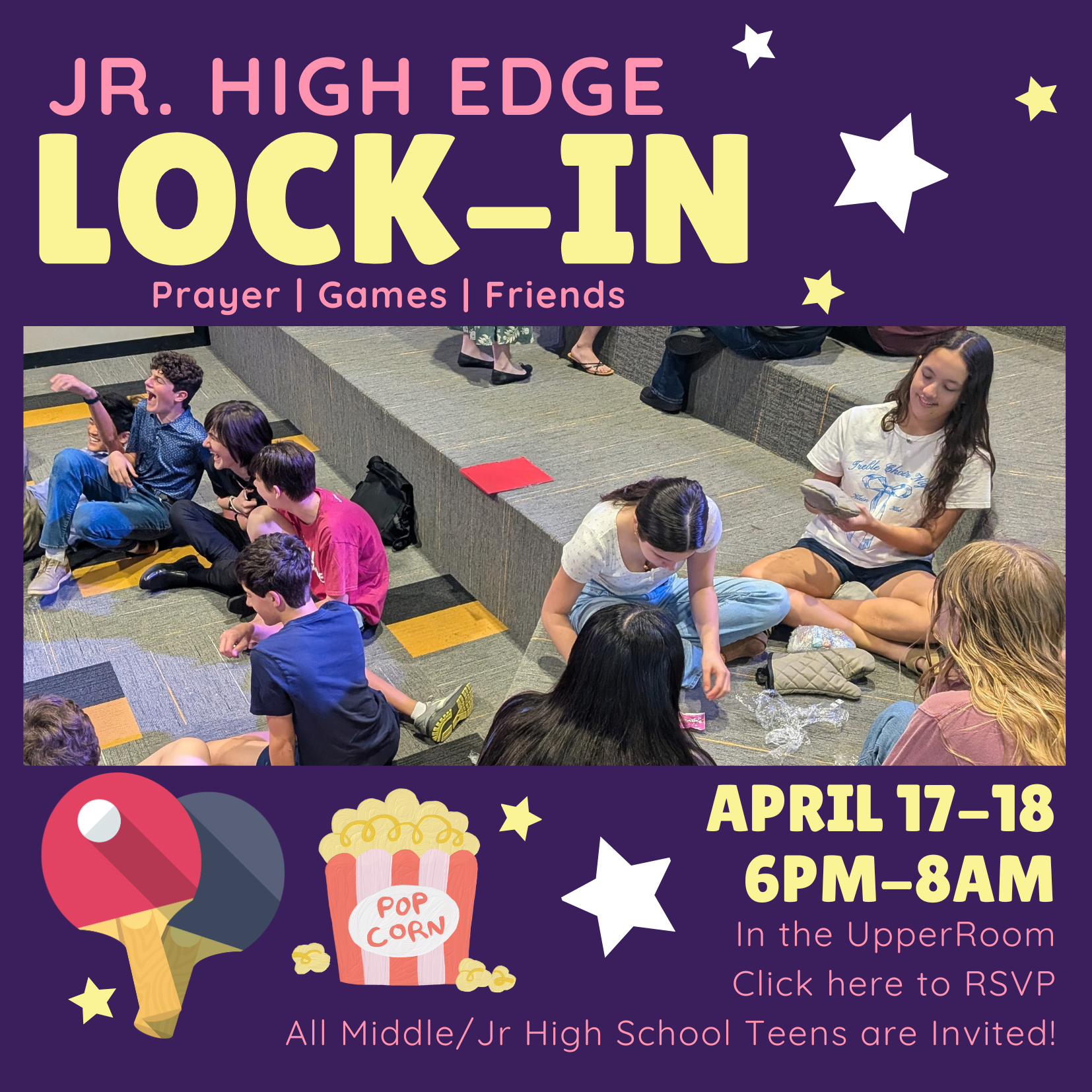 Jr. High Formation Sessions are based on EDGE ministry materials by Life Teen and include time for prayer, fun, weekly messages from experienced catechists, and fellowship in small groups by grade and gender.