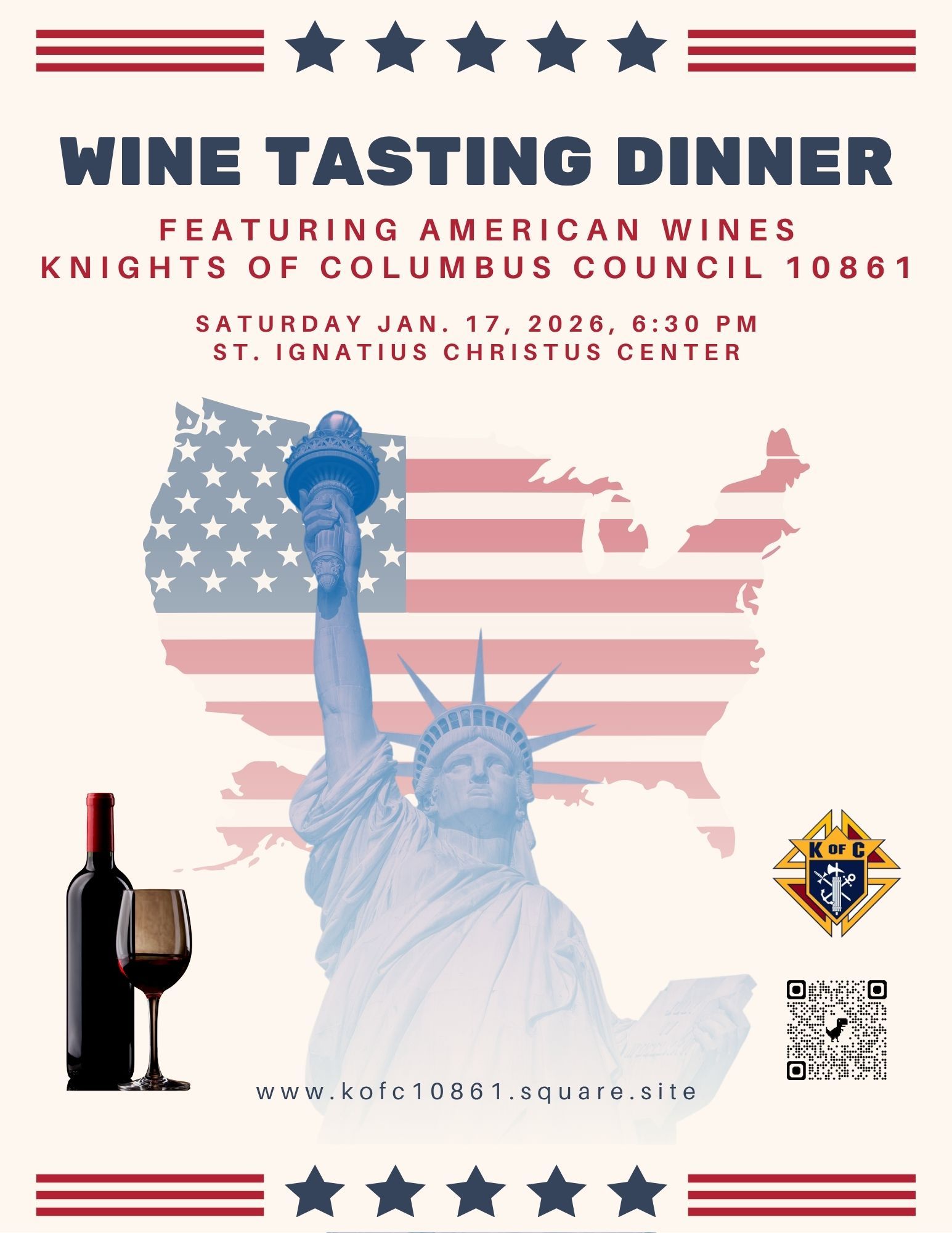 The Knights of Columbus Council 10861 invite you to our Wine Tasting Dinner, showcasing the best of American wines.